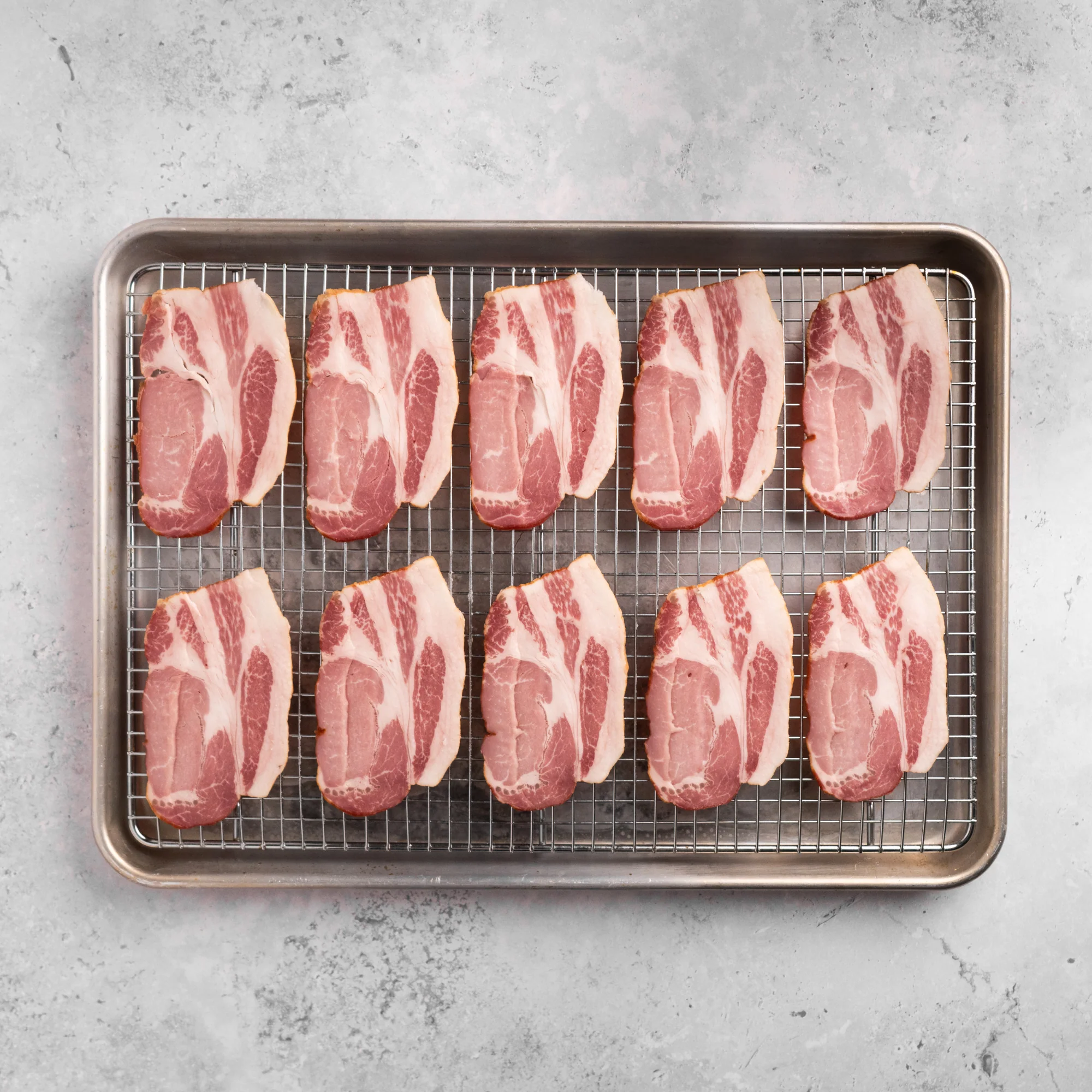 SRF Canadian Bacon made from Kurobuta pork is an elevated take on a time-honored favorite. Also known as back bacon or breakfast bacon, itās the essential ingredient for Eggs Benedict.