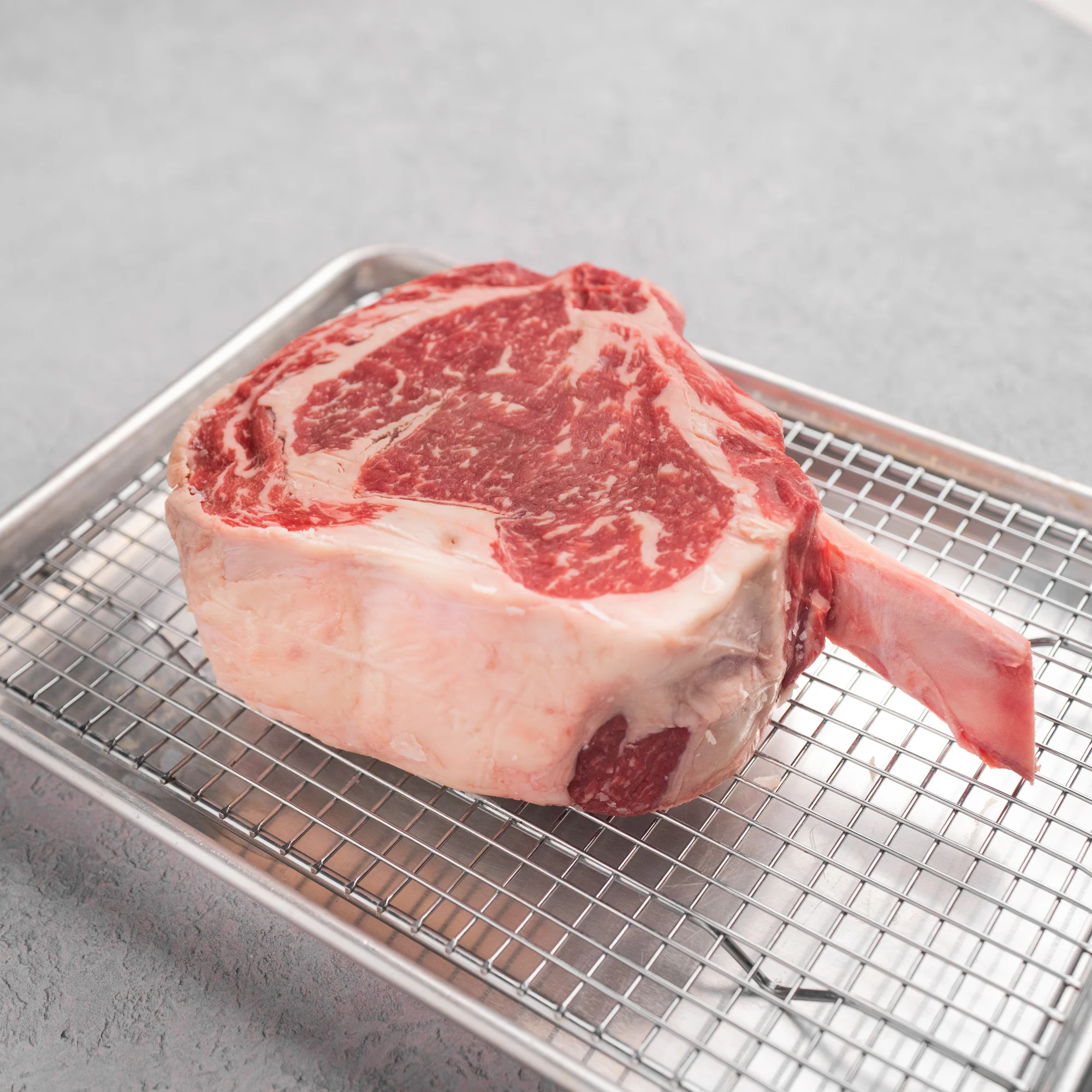 The Double R Ranch cowboy steak is a giant of a ribeye to make you feel like you're home on the range. We've left the rib bone in place so this cowboy steak will look monumental on the grill or on a serving platter. At an average weight of two pounds, this is a bone-in ribeye large enough to serve two or more. The rib bone is Frenched, or cleaned, which makes for a spectacular plate appearance. Our Double R Ranch steaks are grass fed, grain finished and showcase the delicious difference and consistent quality of our Northwest grown beef, some of the best steaks for sale online.Ā