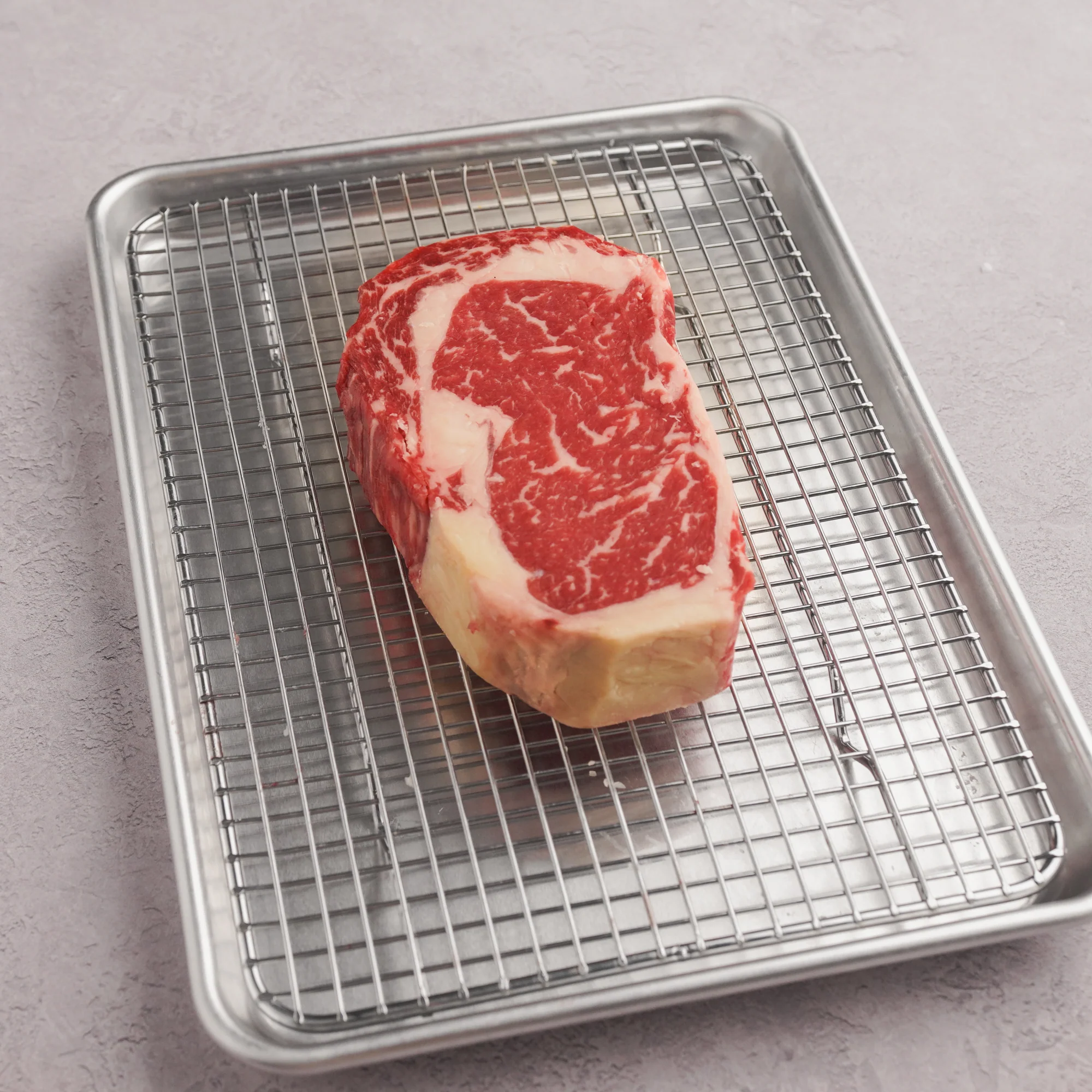Double R Ranch dry-aged ribeye steaks start with richly marbled beef and then enhance the flavor through the dry-aging process. These ribeyes rival the steaks served in the finest dining establishments in the country. The high level of intramuscular fat is a key element in creating the best dry-aged steaks with a superior level of tenderness and distinctive flavor.