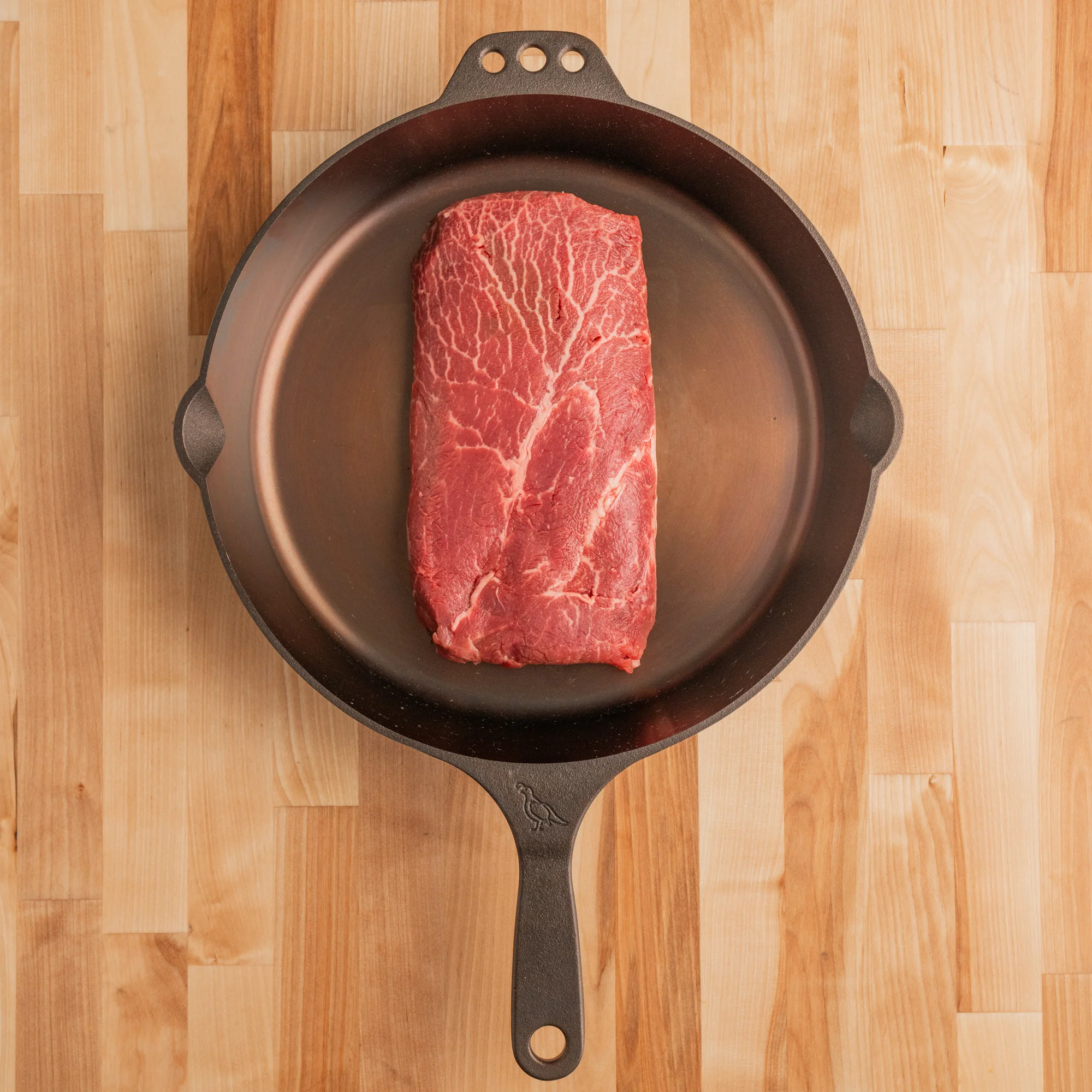 The flat iron is a relative newcomer to the steak scene but has been a butcher’s secret for years. Cut from the chuck (shoulder), the flat iron is a fantastic combination of rich beef flavor and a tender, meaty bite. This steak is amazingly versatile; simply throw it on the grill or prepare with your favorite marinade for an extra kick of flavor. While we believe it's best served medium rare, this steak holds up to high heat and is a good candidate for anyone who prefers a well done steak.